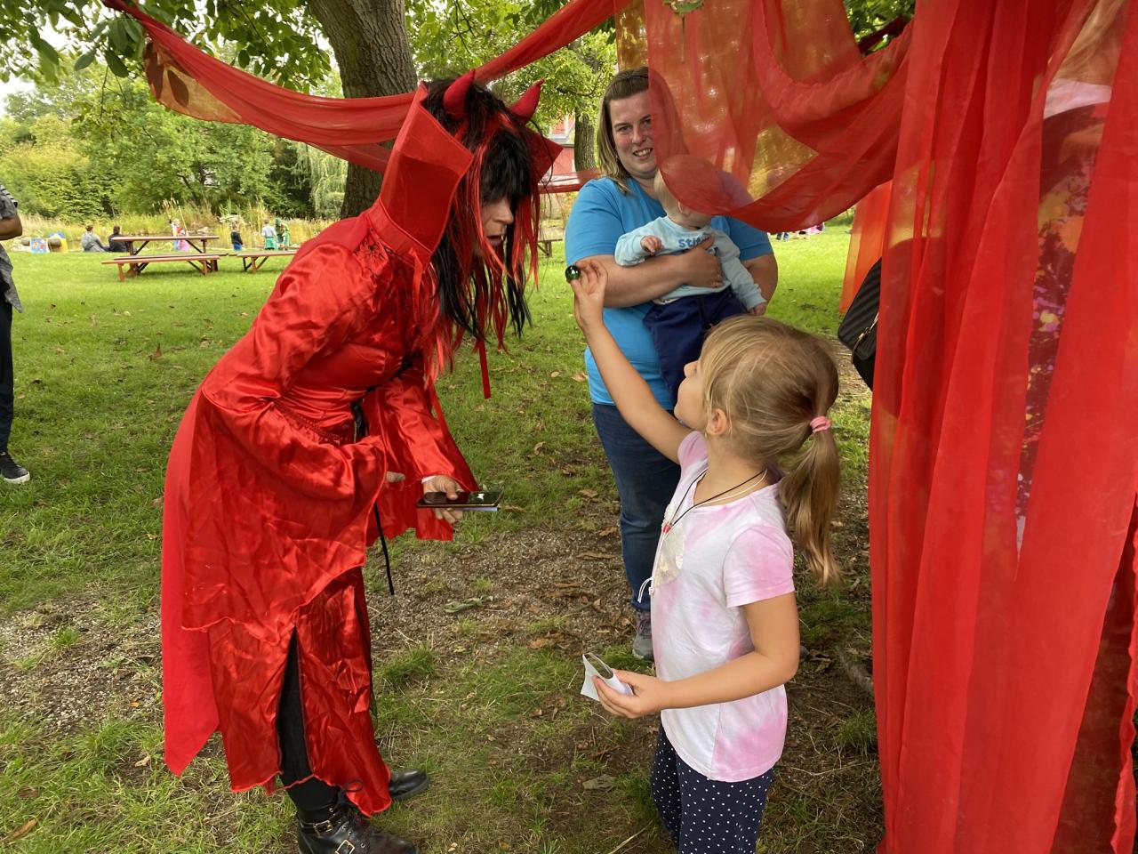Děti se navíc mohly samy aktivně zapojit do „samoobslužných stanovišť“: chůze na chůdách nebo v obřích šlápotách a malování na obličej.