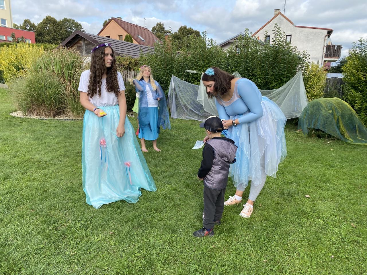 U vstupu vítala návštěvníky princezna (Kamila Nergerová) společně s mušketýrem (Dana Reiterová). Každé dítě dostalo hrací kartu a na cestu domácí sušenku. Pak už se mohly vydat objevovat jednotlivá pohádková stanoviště. V zahradě děti potkaly klauna (Helča Mazáková), Makovou panenku a Motýla Emanuela (Dita Drdková a David Trokšiar), Červenou Karkulku (Eliška Suchanová) a plyšového vlka, skupinku víl (Bára Zaciosová s dětmi Natálkou Matějkovou, Terkou Nekolnou, Bětkou Keřlíkovou a Johy Lacinovou), vodníka (Ilona Lacinová), Křemílka a Vochomůrku (Honza Bejček a Richard Šťastný), čerty (Lenka Havránková s Luckou Hájkovou a Hubertem Šimečkem) či čarodějnici (Šárka Heinová).