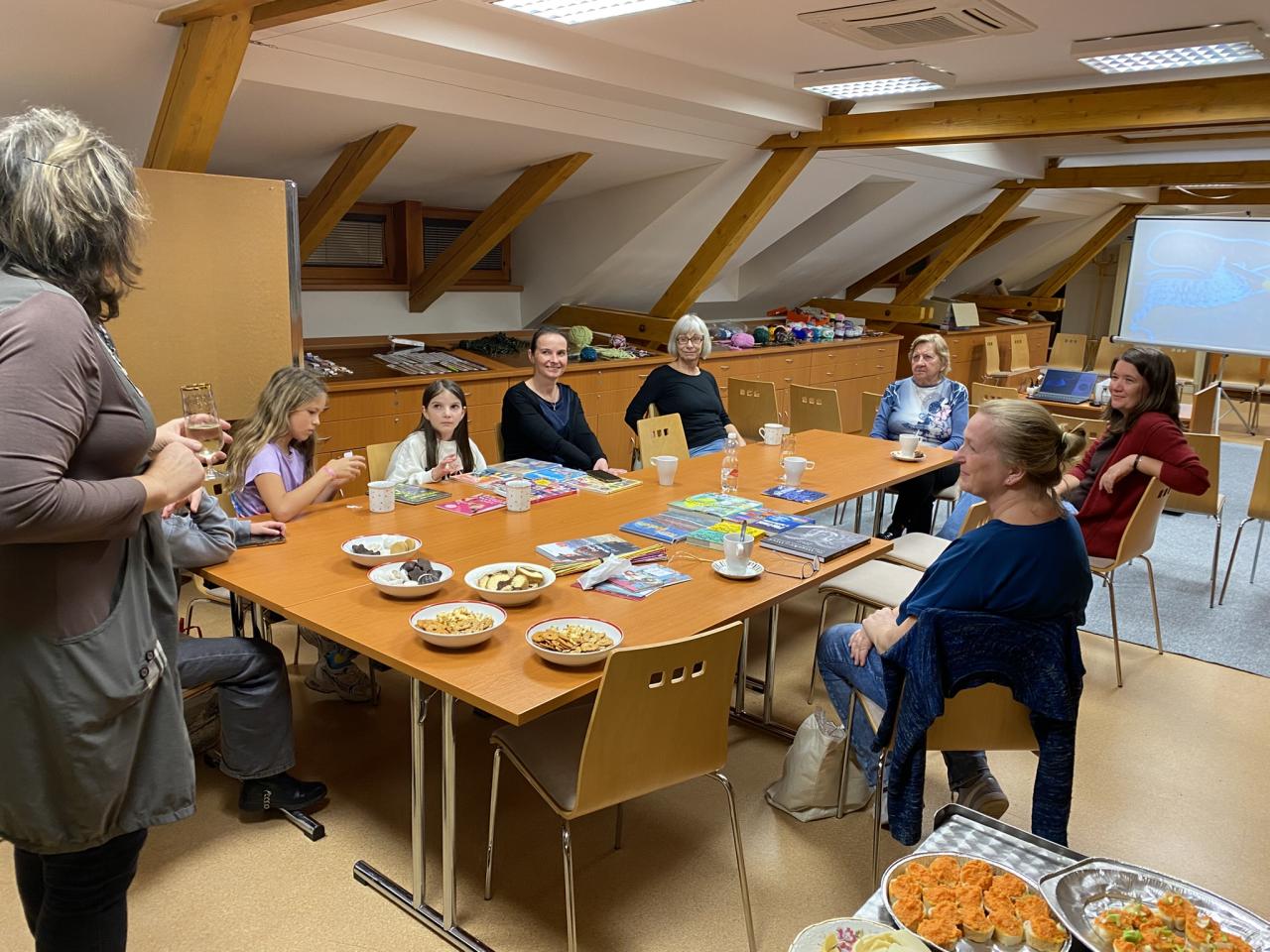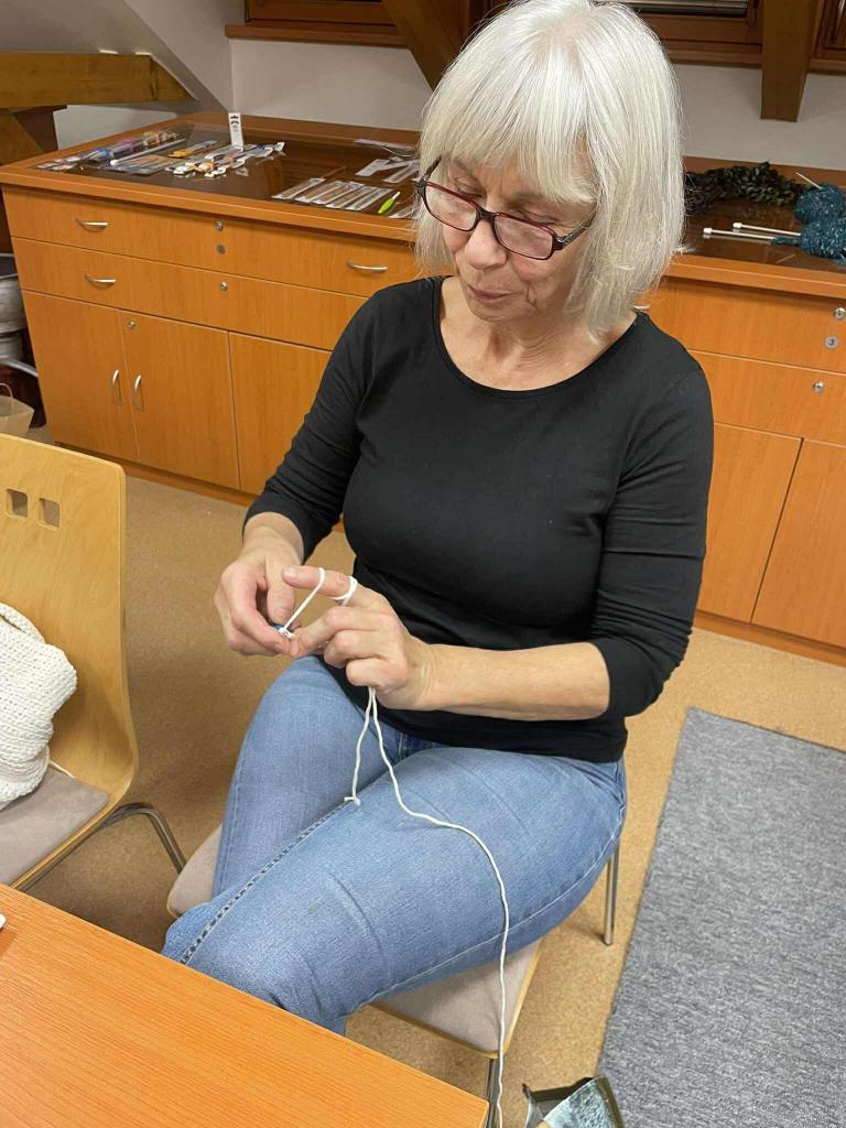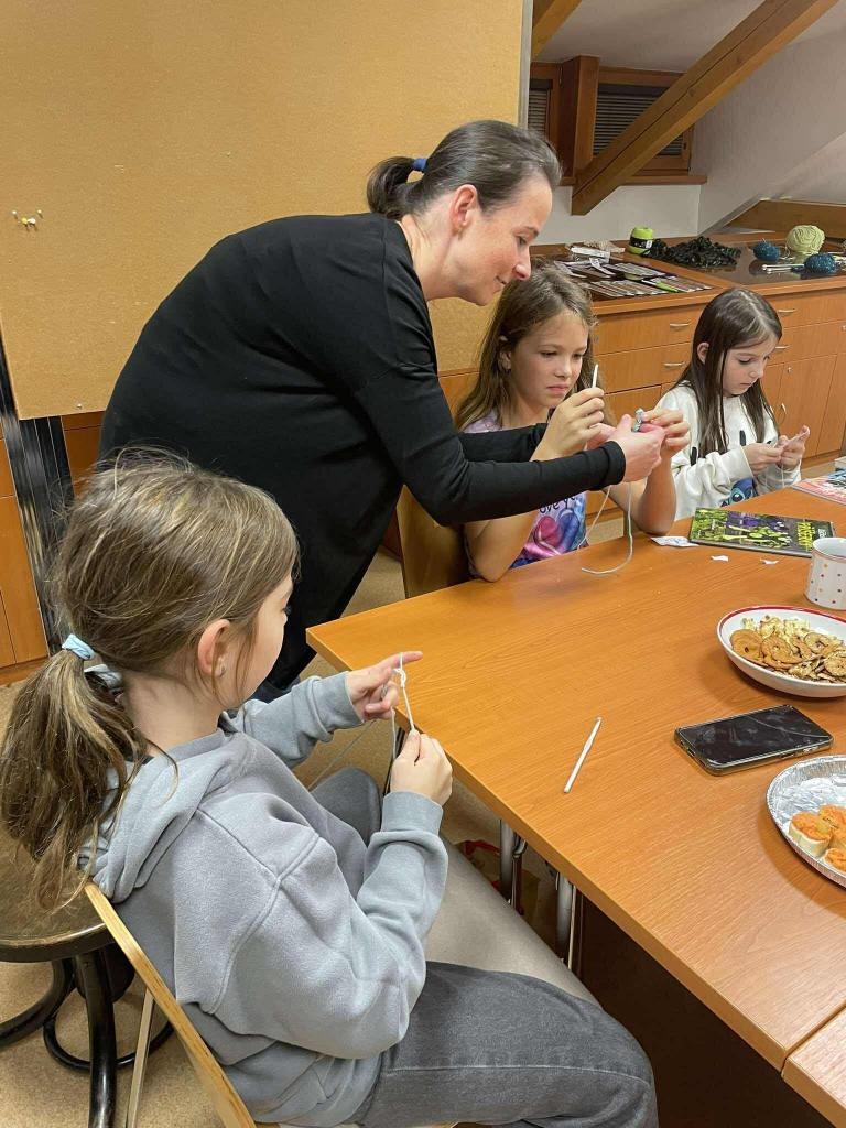 6. 11. 2025 se naše knihovna proměnila v místo setkání Klubíčka generací! Učily jsme se základy háčkování ve velmi příjemné atmosféře a napříč generacemi. Setkání se nám tak líbilo, že jsme se hned usnesly: po Novém roce si to chceme zopakovat, a tentokrát dojde i na pletení!