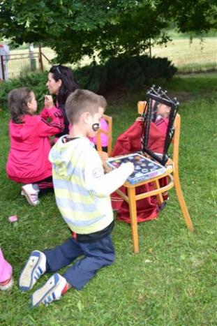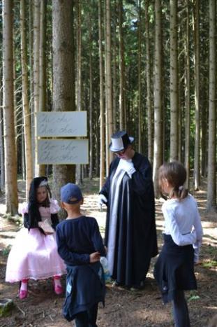 Zajímavosti letošního ročníku: Místo odškrtávání splnění úkolů na stanovišti si děti odnášely barevné „céčko“ (retro z 80. let) a postupně jim z nich vznikl řetízek, který měly navěšený na cedulce nebo na ruce. Zahrály si nové pohádkové postavy (krysáci, X a Y, mušketýři, krtek). Účastníci mohli nakouknout do Strašidelného doupěte – u krysáků (naaranžované dekorace a kostýmy ve stanu) a vyzkoušet si středověké pokrývky hlavy, v cíli pak popustit uzdu fantazii a namalovat si něco na obličej. Některé úkoly popsané na ceduli se rozhodly pohádkové postavy bojkotovat a vymyslely si na poslední chvíli úplně jiné a pod pohrůžkou zapíchnutí kordem trvaly na jejich plnění (že pane mušketýre?!). Chválíme účast dětí ze základní školy, které ochotně obsadily dvě stanoviště (trpaslíky a vodníky), dokonce se některé musely na akci dopravit, protože nejsou z Milína. Statečnost byla potřeba v Dračím doupěti – drak občas přivázal maminku ke stromu a chtěl od dětí, aby ji vysvobodily, také musely odklízet dračí „výkaly“. Posedět jste si mohli v hospodě „U Papouška“ a tam propadnout kouzlu karbanu (místo karet byly vidět barevné useklé lidské ruce - pirátské trofeje). Loupežníci se opět pochlubili svým pokladem a letos jim nikdo nic neukradl. Lesní první a poslední pomoc vzbuzovala smích u dospělých, u dětí však došlo někdy i na slzy (když se připravovala injekce proti zlobení), jedné účastnici se nasazovala kyslíková maska (ochotnická divadelnice se nezapře). Stanoviště č. 11 bylo posunuto kousek za cedulku (chybička se vloudila), děti si myslely, že šíleně smutná princezna utekla za princem do vězení. Našly ji za křovisky. Prý měla co dělat, aby vydržela být delší dobu smutná a vážná. Cukr se ztratil – a jsme u názvu článku! Došlo k určité záhadě: na samostatném stanovišti číslo 10 byl připraven kostkový cukr v krabici. Děti měly za úkol jednu kostičku sníst (pokud rodiče dovolí) a druhou hodit mravencům nebo ji donést na další stanovišti přímo Ferdovi mravencovi. Doslechli jsme se, že krabici s cukrem některé děti viděly a úkol splnily, další však již cukrovou krabici nenašly. Ani při úklidu fáborků jsme cukr neviděli. Když se pak v týdnu konala akce školky – noc předškoláků, večerní procházka zavedla děti na trasu Pohádkového lesa a ejhle! Krabice s cukrem se zase objevila na svém místě! Prostě pohádkové čarování… Pohádku o Červené Karkulce jistě všichni znají, ale určitě neznali tu část, kde se musí chodit po laně, aby se správně došlo za babičkou. Děti byly hodně spokojené s koňskými projížďkami díky Jirkovi Novákovi po celou dobu konání akce. Hukot zemědělských strojů na posečené louce před zahradou způsobil, že krysák chtěl být slyšet a tak křičel a křičel…, až z toho pak na celý další týden ztratil hlas. Na posledním stanovišti u Ferdy a Berušky se podařilo některým dětem chytit do lasa koníka. Největší zájem však byl o „prachobyčejné“ zatloukání hřebíků (spravit kočár pro Berušku). Přimlouváme se tedy u rodičů, aby dětem někdy místo drahých elektronických hraček koupili jednoduché nářadí. V cíli čekalo na děti kolo štěstí, kde si losovaly různé drobné odměny. A fakta: Dětských účastníků 105, dospělých přes 80. Deset stanovišť s pohádkovými postavami, tři samostatné úkoly: Start/Cíl - Krysáci Eda, Hodan a Hubert Dana Reiterová, Pepík a Ondra Kott 1 Mušketýři a princezna Zdeněk Vošmik, Tomáš Zíma a Terezka Vošmiková 2 Samostatné stanoviště Céčko ve vodě 3 Sněhurka a trpaslíci Terka Mládková, Lucka Krausová, Libor Pospíšil, Vojta Matouš 4 Vodníci Adéla, Kristýna a Bára Pacovských, Terka a Jan Sladovníkovi 5 Samostatné stanoviště Céčko v mouce 6 Dračí doupě Jitka Jahodová 7 Loupežníci Martin Toužimský, Sláva Kolář, Eliška Reiterová a Míra Formánek, 8 Piráti Klára, Pavel, Štěpánka a Eliška Ružičkovi, Péťa Bašíková 9 Krtek a žába Týna Čedíková a Kájina Štěpánková 10 Samostatné stanoviště Kostkový cukr 11 Pan X, Y a Šíleně smutná princezna Ivana, Petr a Anička Vopěnkovi 12 Karkulka a vlk Lenka a Eva Šafránkovy 13 Ferda mravenec a Beruška Jarka Humlová a Hela Mazáková Lesní první a poslední pomoc: Hanka Toužimská, Šárka Heinová a Soňa Kolářová Prodej vstupenek: Paní Toužimská a paní Pečarková Fotografie pořizovaly: Jana Falcmanová, lesní pomoc a různé pohádkové bytosti Poděkování patří všem dobrovolným účinkujícím, MŠ Milín za poskytnutí areálu zahrady, MC Milínek za část odměn pro děti, Obci Milín za finanční dotaci využitou na koupi kostýmů a dekorací, účastníkům, kteří děkovali a chválili a hlavně našli čas a chuť v dnešní „přeakcované“ době navštívit právě ten náš milínský pohádkový les. Příští rok Vás tedy čekáme na lesní sportovní stezce (bez pohádek, ale úkoly a legrace zajištěny) a na Pohádkovém lese doufejme v r. 2016. A proč ne každý rok? Může být… Aktivisté se mohou informovat v knihovně a zabezpečit si celou akci sami, rádi zapůjčíme kostýmy. Knihovnice se však potřebují trochu více věnovat knihovně. Za pořádající Knihovnu Dr. E. Bořického Milín: krysák Hodan (Dana Reiterová)